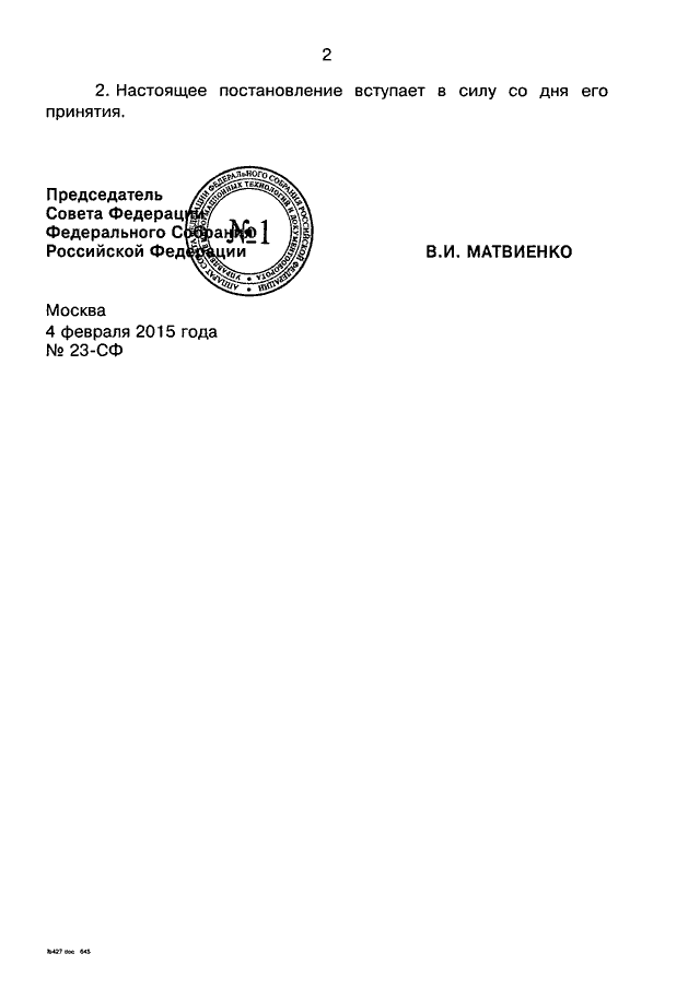 ПОСТАНОВЛЕНИЕ СФ ФС РФ от 04.02.2015 N 23-СФ