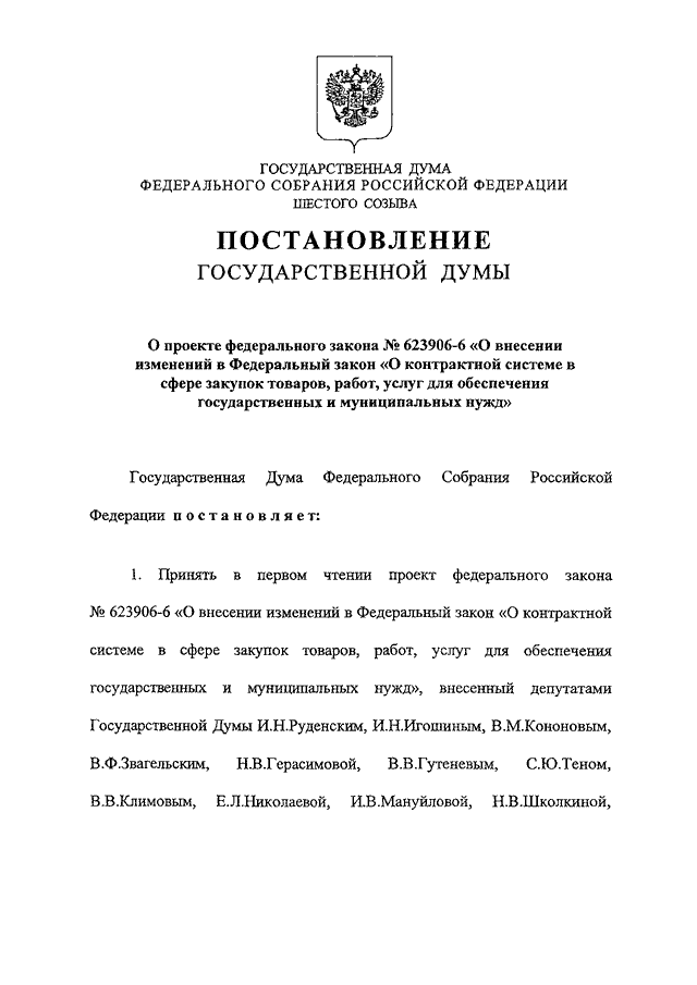 "О ПРОЕКТЕ ФЕДЕРАЛЬНОГО ЗАКОНА N 623906-6 "О ВНЕСЕНИИ ИЗМЕНЕНИЙ В ФЕДЕРАЛЬНЫЙ ЗАКОН "О КОНТРАКТНОЙ СИСТЕМЕ В СФЕРЕ ЗАКУПОК ТОВАРОВ, РАБОТ, УСЛУГ ДЛЯ ОБЕСПЕЧЕНИЯ ГОСУДАРСТВЕННЫХ И МУНИЦИПАЛЬНЫХ НУЖД"