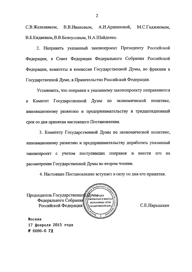 ПОСТАНОВЛЕНИЕ ГД ФС РФ от 17.02.2015 N 6080-6 ГД