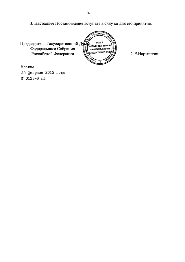 ПОСТАНОВЛЕНИЕ ГД ФС РФ от 20.02.2015 N 6123-6 ГД
