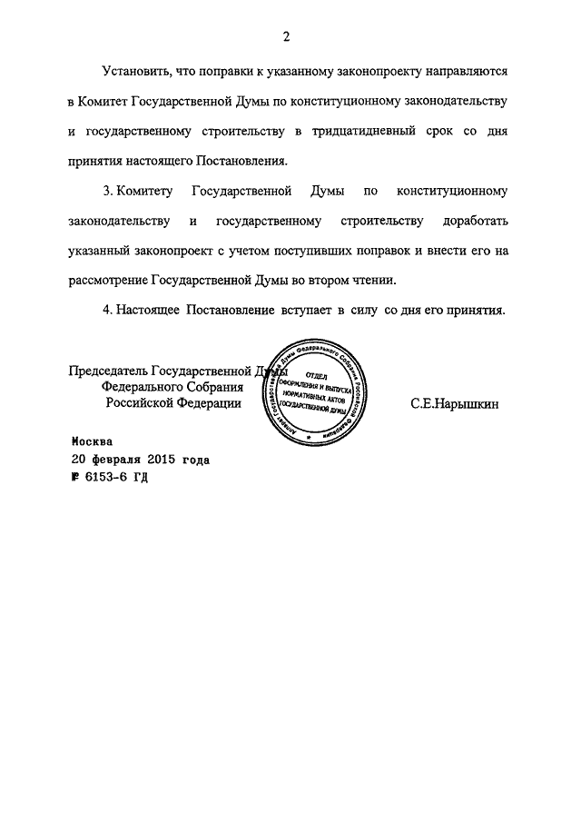 ПОСТАНОВЛЕНИЕ ГД ФС РФ от 20.02.2015 N 6153-6 ГД