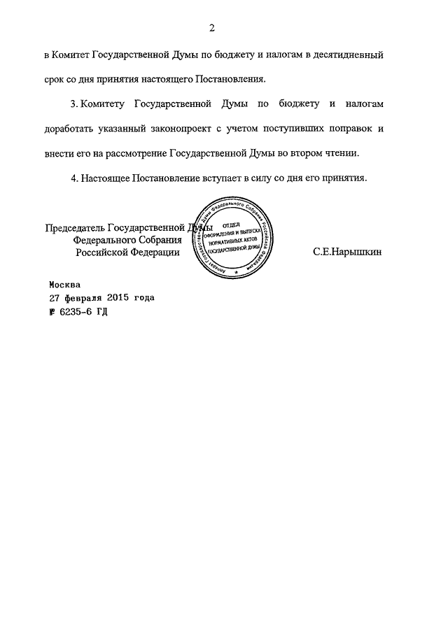 ПОСТАНОВЛЕНИЕ ГД ФС РФ от 27.02.2015 N 6235-6 ГД