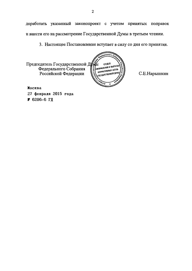ПОСТАНОВЛЕНИЕ ГД ФС РФ от 27.02.2015 N 6206-6 ГД