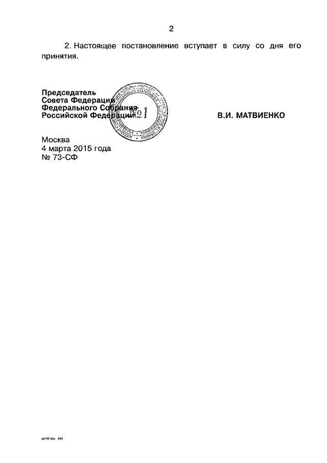 ПОСТАНОВЛЕНИЕ СФ ФС РФ от 04.03.2015 N 73-СФ