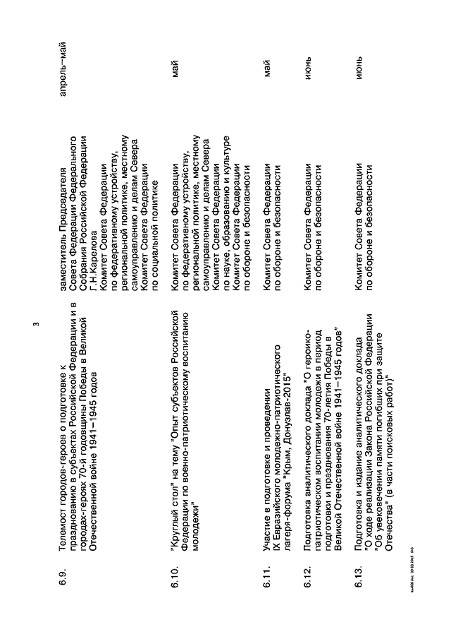 "О ВНЕСЕНИИ ИЗМЕНЕНИЙ В ПЛАН МЕРОПРИЯТИЙ СОВЕТА ФЕДЕРАЦИИ ФЕДЕРАЛЬНОГО СОБРАНИЯ РОССИЙСКОЙ ФЕДЕРАЦИИ НА ВЕСЕННЮЮ СЕССИЮ 2015 ГОДА"