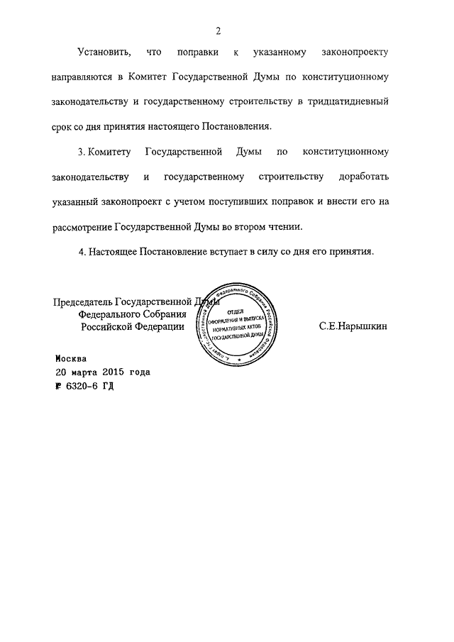 ПОСТАНОВЛЕНИЕ ГД ФС РФ от 20.03.2015 N 6320-6 ГД