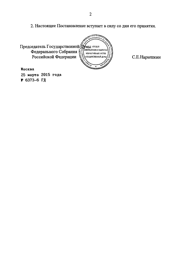 ПОСТАНОВЛЕНИЕ ГД ФС РФ от 25.03.2015 N 6373-6 ГД