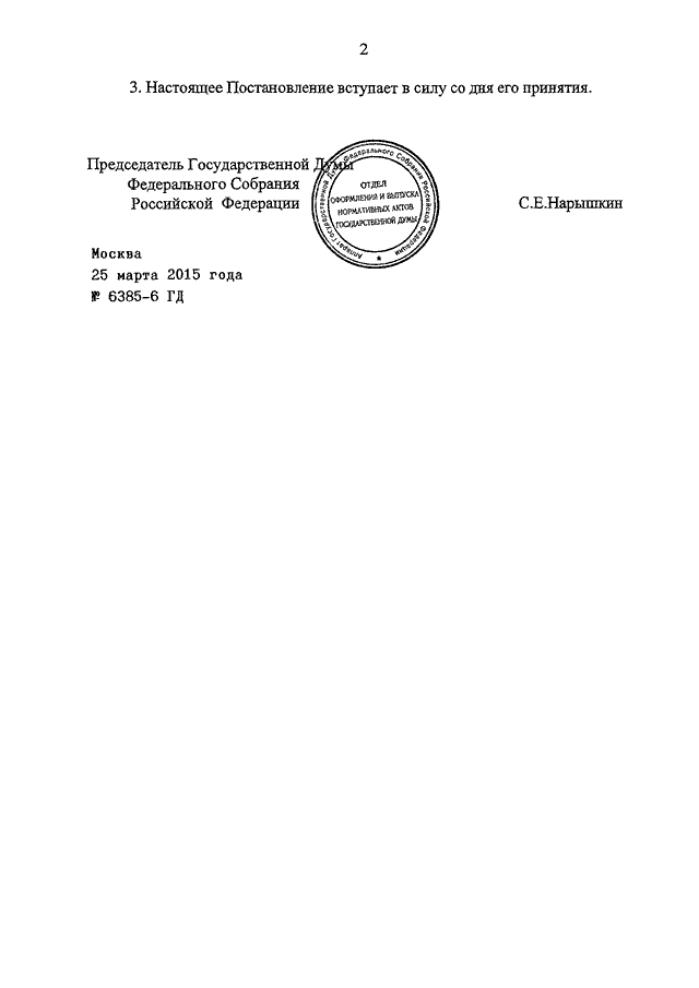 ПОСТАНОВЛЕНИЕ ГД ФС РФ от 25.03.2015 N 6385-6 ГД