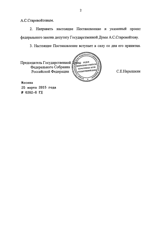ПОСТАНОВЛЕНИЕ ГД ФС РФ от 25.03.2015 N 6382-6 ГД