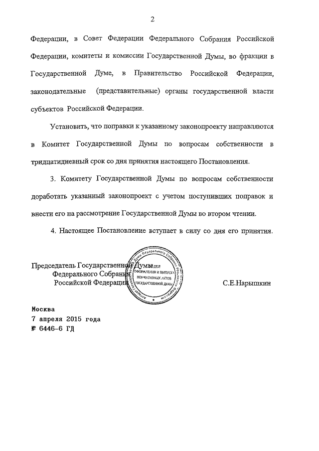 ПОСТАНОВЛЕНИЕ ГД ФС РФ от 07.04.2015 N 6446-6 ГД
