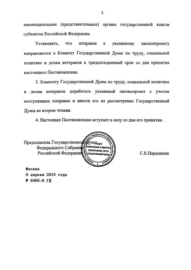 ПОСТАНОВЛЕНИЕ ГД ФС РФ от 08.04.2015 N 6465-6 ГД