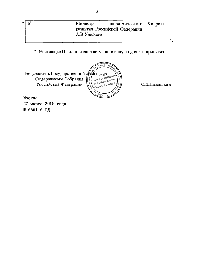 ПОСТАНОВЛЕНИЕ ГД ФС РФ от 27.03.2015 N 6391-6 ГД