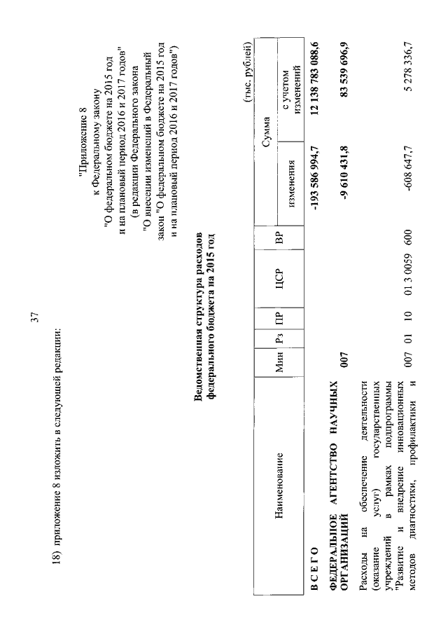 "О ВНЕСЕНИИ ИЗМЕНЕНИЙ В ФЕДЕРАЛЬНЫЙ ЗАКОН "О ФЕДЕРАЛЬНОМ БЮДЖЕТЕ НА 2015 ГОД И НА ПЛАНОВЫЙ ПЕРИОД 2016 И 2017 ГОДОВ"