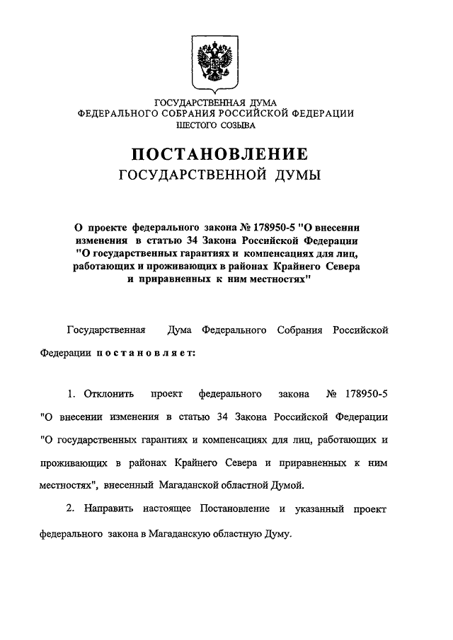 ПОСТАНОВЛЕНИЕ ГД ФС РФ от 21.04.2015 N 6546-6 ГД