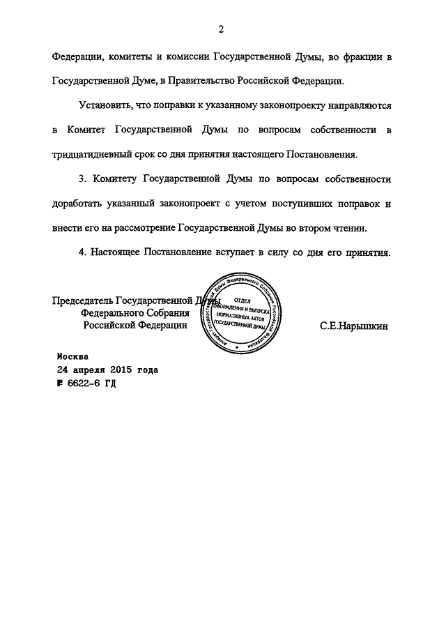 ПОСТАНОВЛЕНИЕ ГД ФС РФ от 24.04.2015 N 6622-6 ГД