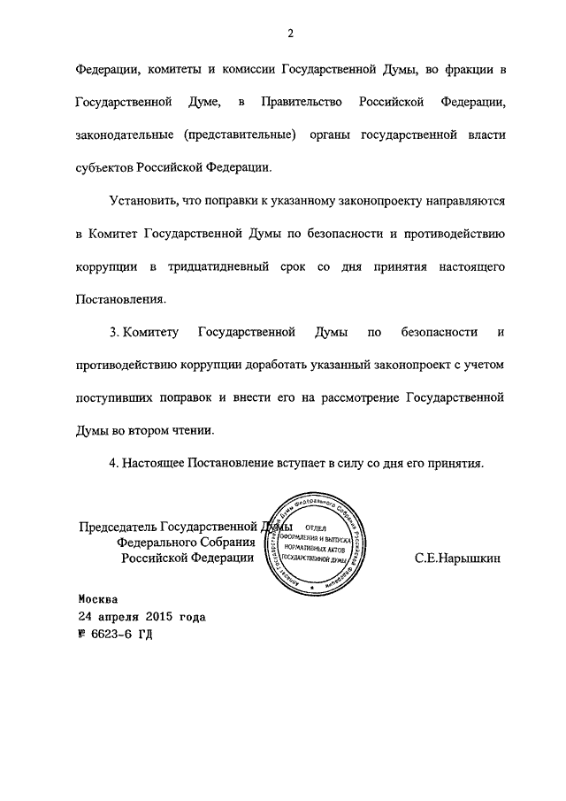 ПОСТАНОВЛЕНИЕ ГД ФС РФ от 24.04.2015 N 6623-6 ГД