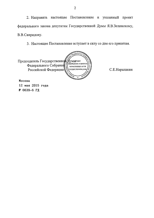 ПОСТАНОВЛЕНИЕ ГД ФС РФ от 12.05.2015 N 6639-6 ГД