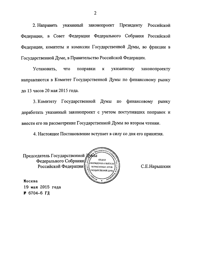 ПОСТАНОВЛЕНИЕ ГД ФС РФ от 19.05.2015 N 6704-6 ГД