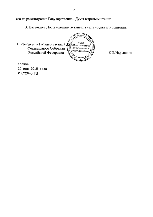 ПОСТАНОВЛЕНИЕ ГД ФС РФ от 20.05.2015 N 6720-6 ГД