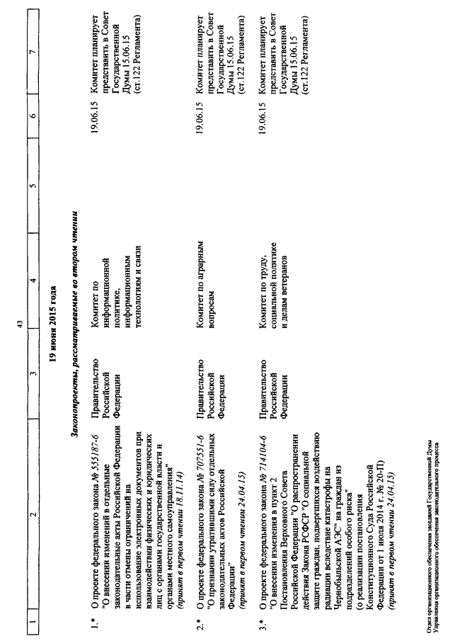 "О КАЛЕНДАРЕ РАССМОТРЕНИЯ ВОПРОСОВ ГОСУДАРСТВЕННОЙ ДУМОЙ С 9 ИЮНЯ ПО 3 ИЮЛЯ 2015 ГОДА"