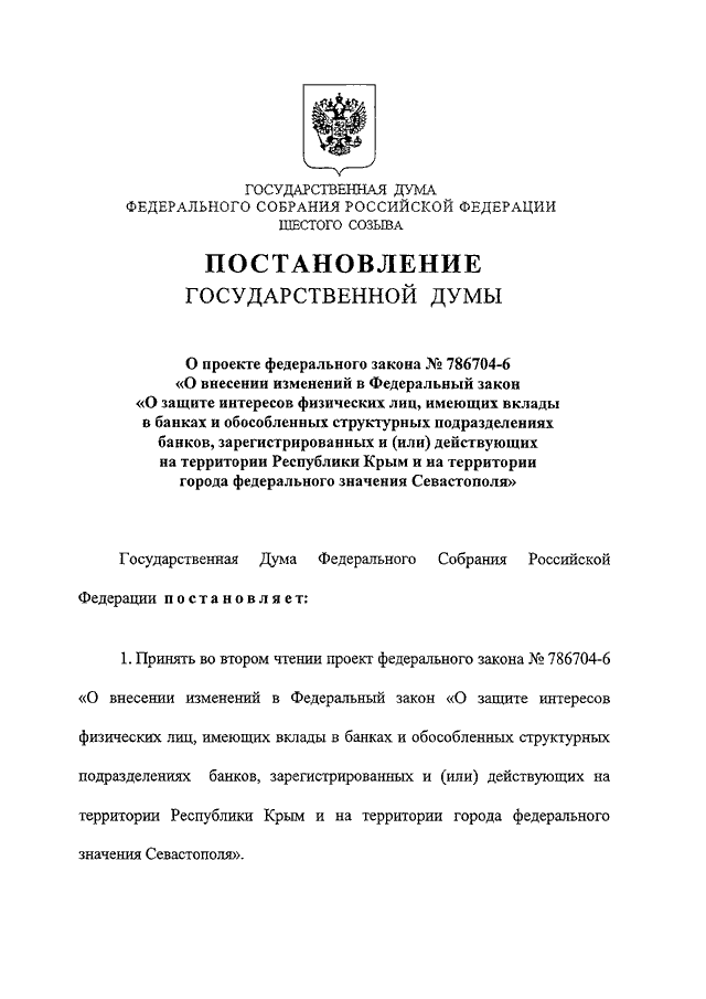 "О ПРОЕКТЕ ФЕДЕРАЛЬНОГО ЗАКОНА N 786704-6 "О ВНЕСЕНИИ ИЗМЕНЕНИЙ В