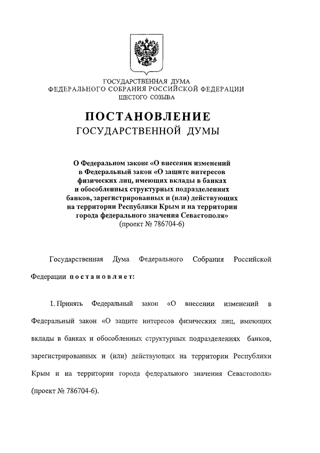 ГОРОДА ФЕДЕРАЛЬНОГО ЗНАЧЕНИЯ СЕВАСТОПОЛЯ" (ПРОЕКТ N 786704-6)"