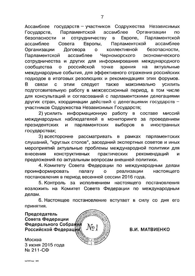 ПОСТАНОВЛЕНИЕ СФ ФС РФ от 03.06.2015 N 211-СФ