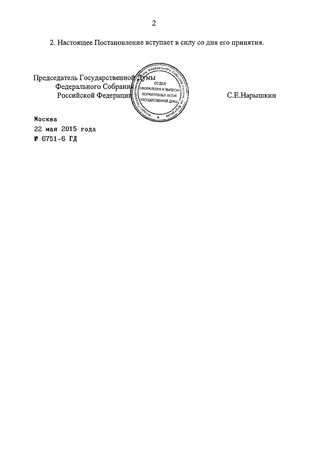 ПОСТАНОВЛЕНИЕ ГД ФС РФ от 22.05.2015 N 6751-6 ГД
