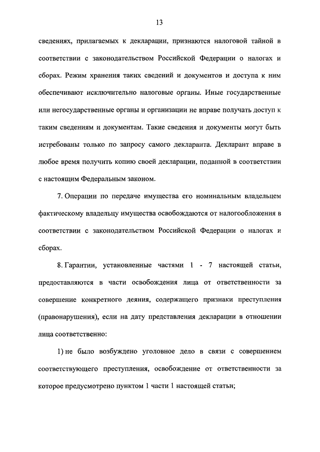 "О ДОБРОВОЛЬНОМ ДЕКЛАРИРОВАНИИ ФИЗИЧЕСКИМИ ЛИЦАМИ АКТИВОВ И СЧЕТОВ (ВКЛАДОВ) В БАНКАХ И О ВНЕСЕНИИ ИЗМЕНЕНИЙ В ОТДЕЛЬНЫЕ ЗАКОНОДАТЕЛЬНЫЕ АКТЫ РОССИЙСКОЙ ФЕДЕРАЦИИ"