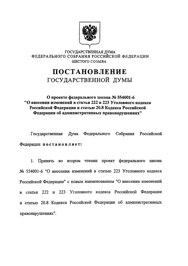 СТАТЬИ 222 И 223 УГОЛОВНОГО КОДЕКСА РОССИЙСКОЙ ФЕДЕРАЦИИ И СТАТЬЮ