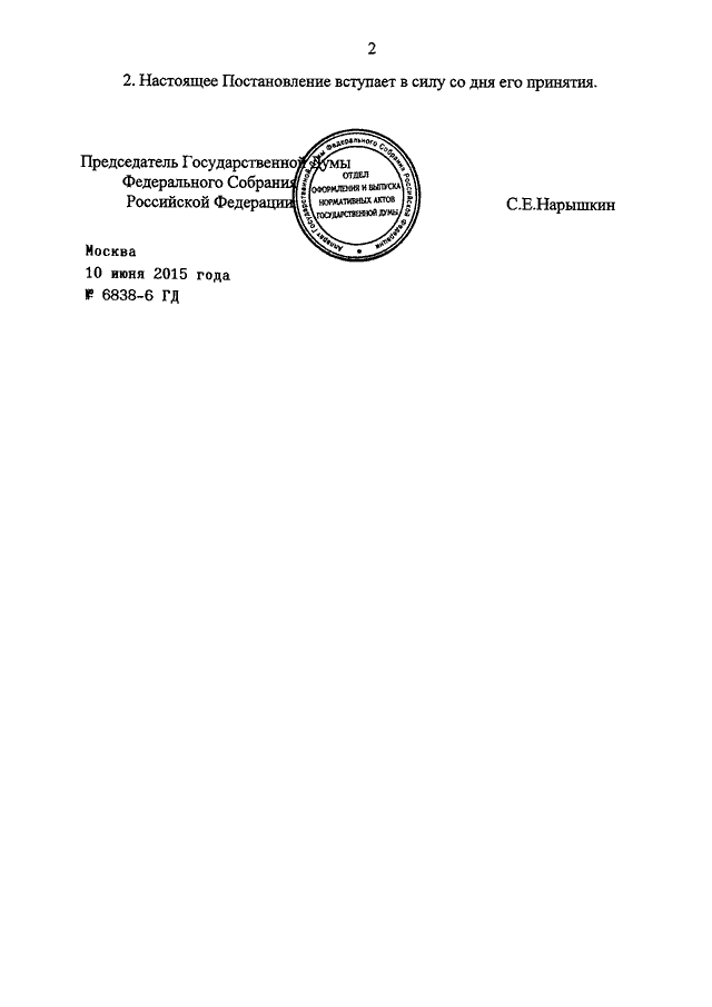 ПОСТАНОВЛЕНИЕ ГД ФС РФ от 10.06.2015 N 6838-6 ГД