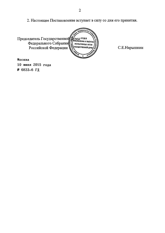 ПОСТАНОВЛЕНИЕ ГД ФС РФ от 10.06.2015 N 6833-6 ГД