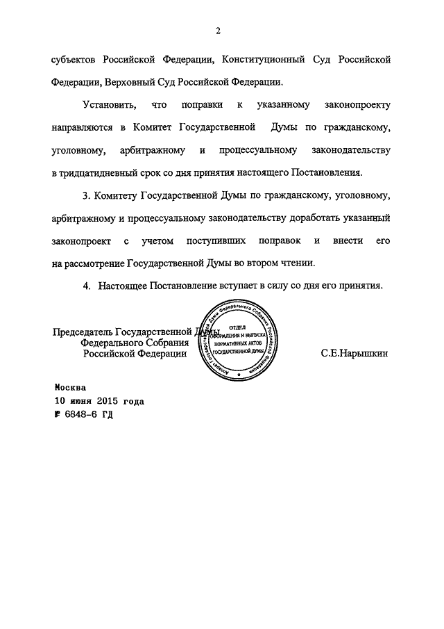 ПОСТАНОВЛЕНИЕ ГД ФС РФ от 10.06.2015 N 6848-6 ГД