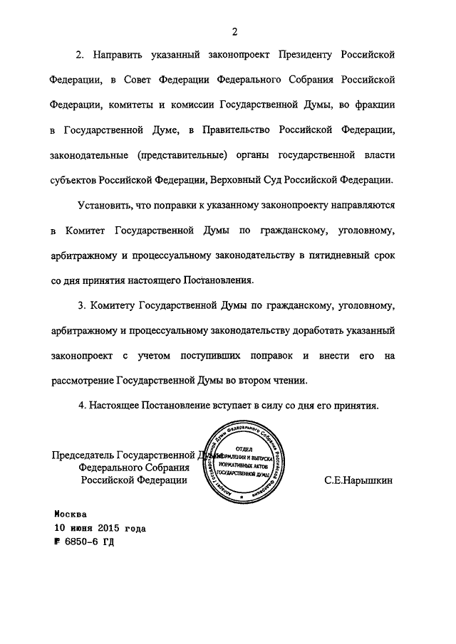 ПОСТАНОВЛЕНИЕ ГД ФС РФ от 10.06.2015 N 6850-6 ГД