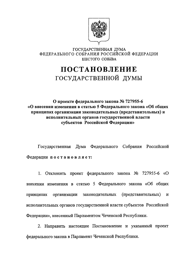 ПОСТАНОВЛЕНИЕ ГД ФС РФ от 10.06.2015 N 6854-6 ГД