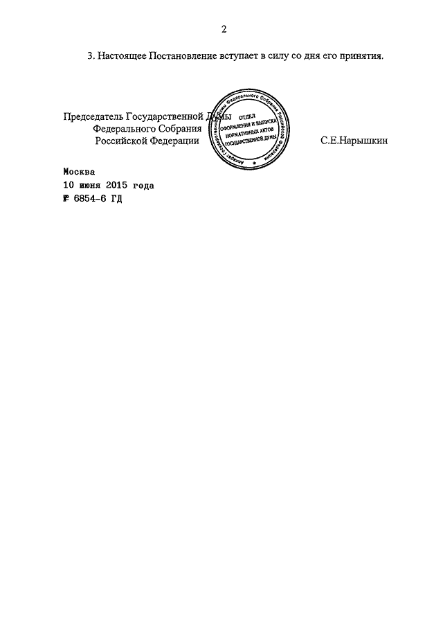 ПОСТАНОВЛЕНИЕ ГД ФС РФ от 10.06.2015 N 6854-6 ГД