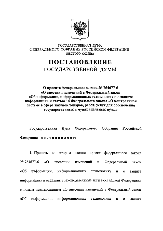 "О ПРОЕКТЕ ФЕДЕРАЛЬНОГО ЗАКОНА N 764677-6 "О ВНЕСЕНИИ ИЗМЕНЕНИЙ В