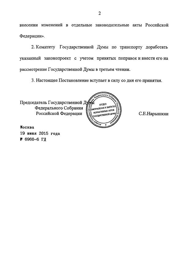 ПОСТАНОВЛЕНИЕ ГД ФС РФ от 19.06.2015 N 6960-6 ГД