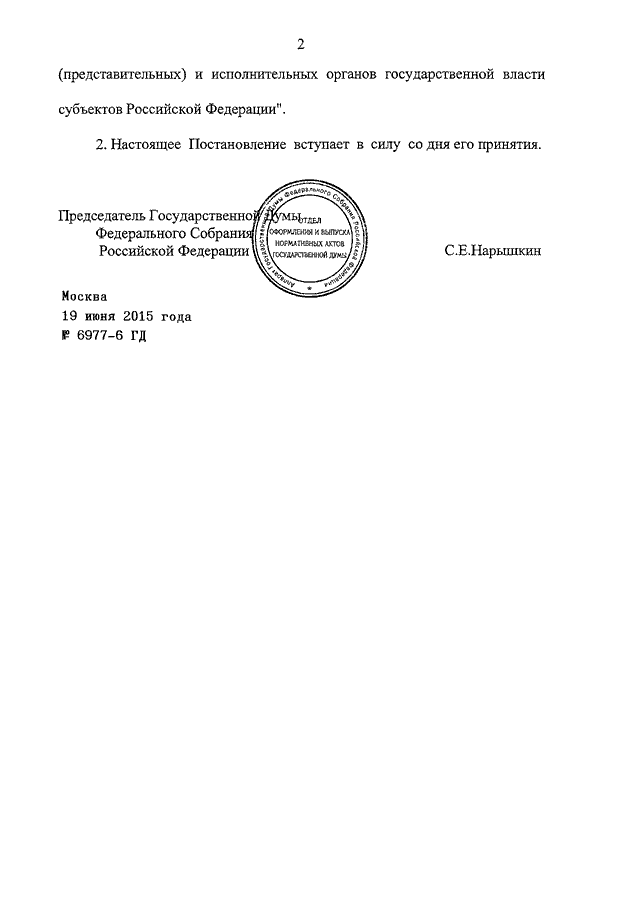 ПОСТАНОВЛЕНИЕ ГД ФС РФ от 19.06.2015 N 6977-6 ГД