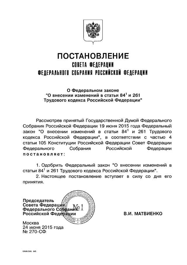 ПОСТАНОВЛЕНИЕ СФ ФС РФ от 24.06.2015 N 270-СФ
