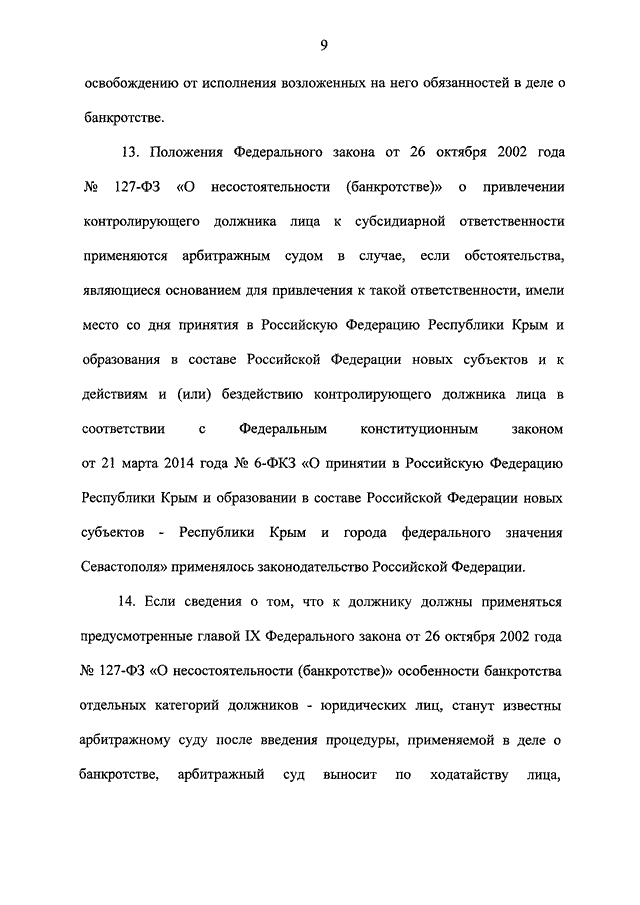 "ОБ УРЕГУЛИРОВАНИИ ОСОБЕННОСТЕЙ НЕСОСТОЯТЕЛЬНОСТИ (БАНКРОТСТВА) НА ТЕРРИТОРИЯХ РЕСПУБЛИКИ КРЫМ И ГОРОДА ФЕДЕРАЛЬНОГО ЗНАЧЕНИЯ СЕВАСТОПОЛЯ И О ВНЕСЕНИИ ИЗМЕНЕНИЙ В ОТДЕЛЬНЫЕ ЗАКОНОДАТЕЛЬНЫЕ АКТЫ РОССИЙСКОЙ ФЕДЕРАЦИИ"