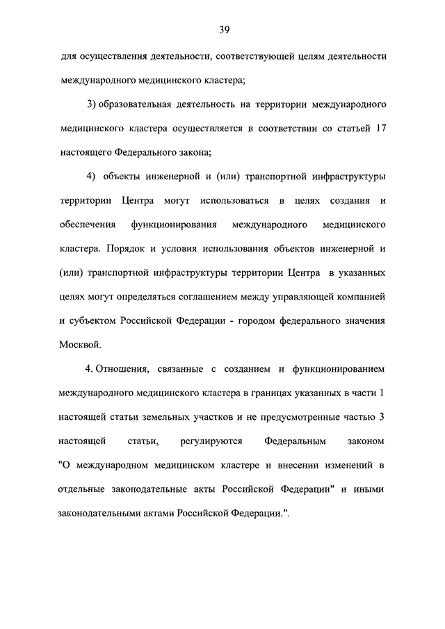 "О МЕЖДУНАРОДНОМ МЕДИЦИНСКОМ КЛАСТЕРЕ И ВНЕСЕНИИ ИЗМЕНЕНИЙ В ОТДЕЛЬНЫЕ ЗАКОНОДАТЕЛЬНЫЕ АКТЫ РОССИЙСКОЙ ФЕДЕРАЦИИ"