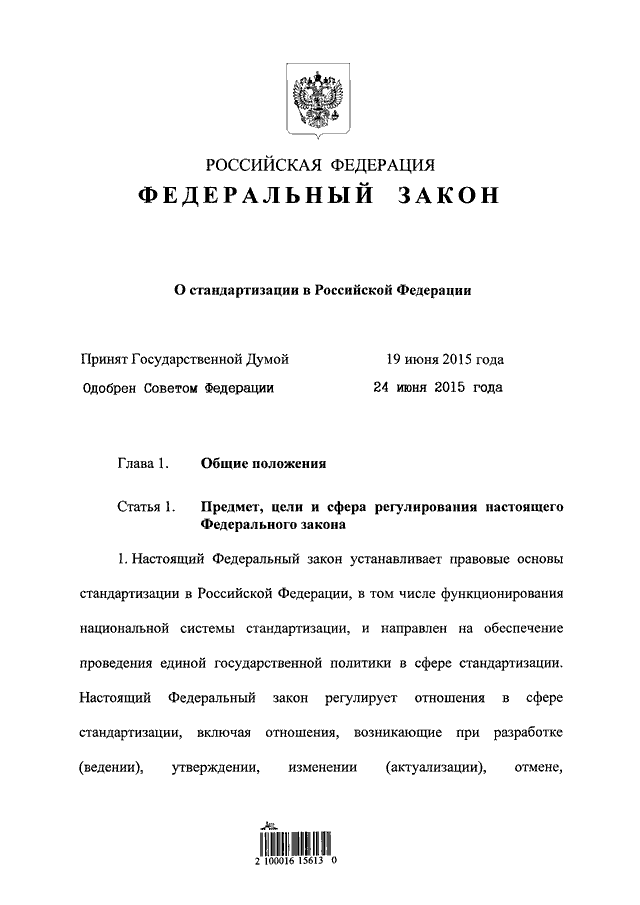 "О СТАНДАРТИЗАЦИИ В РОССИЙСКОЙ ФЕДЕРАЦИИ"