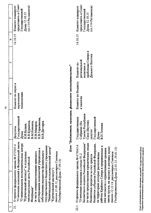 "О КАЛЕНДАРЕ РАССМОТРЕНИЯ ВОПРОСОВ ГОСУДАРСТВЕННОЙ ДУМОЙ С 13 ПО 23 ОКТЯБРЯ 2015 ГОДА"