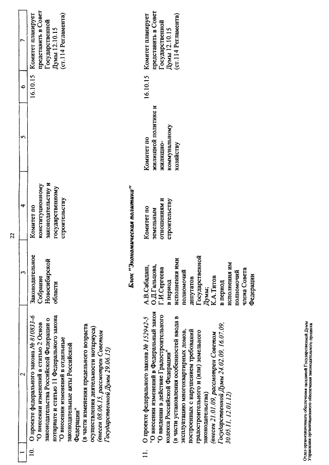 "О КАЛЕНДАРЕ РАССМОТРЕНИЯ ВОПРОСОВ ГОСУДАРСТВЕННОЙ ДУМОЙ С 13 ПО 23 ОКТЯБРЯ 2015 ГОДА"