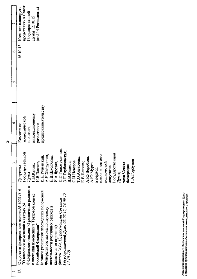 "О КАЛЕНДАРЕ РАССМОТРЕНИЯ ВОПРОСОВ ГОСУДАРСТВЕННОЙ ДУМОЙ С 13 ПО 23 ОКТЯБРЯ 2015 ГОДА"