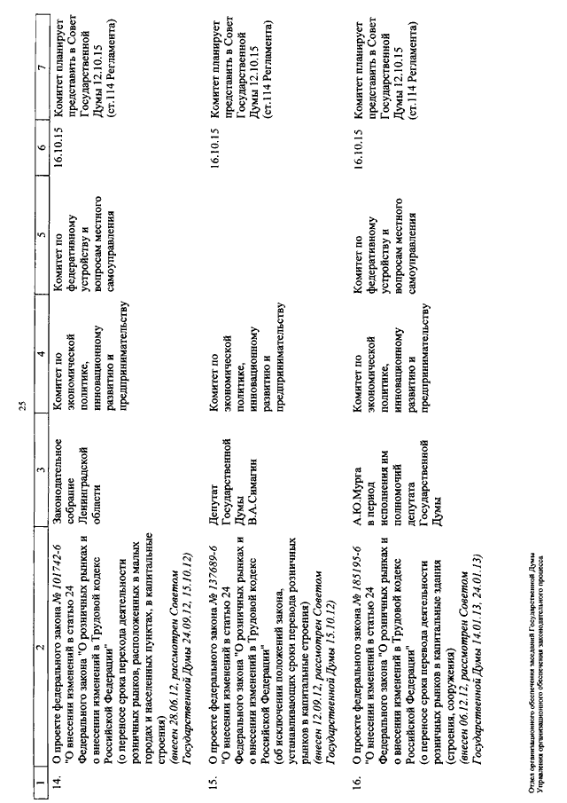 "О КАЛЕНДАРЕ РАССМОТРЕНИЯ ВОПРОСОВ ГОСУДАРСТВЕННОЙ ДУМОЙ С 13 ПО 23 ОКТЯБРЯ 2015 ГОДА"