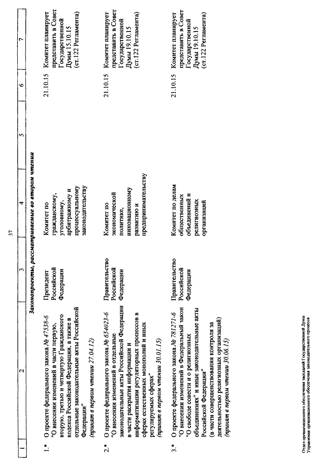 "О КАЛЕНДАРЕ РАССМОТРЕНИЯ ВОПРОСОВ ГОСУДАРСТВЕННОЙ ДУМОЙ С 13 ПО 23 ОКТЯБРЯ 2015 ГОДА"