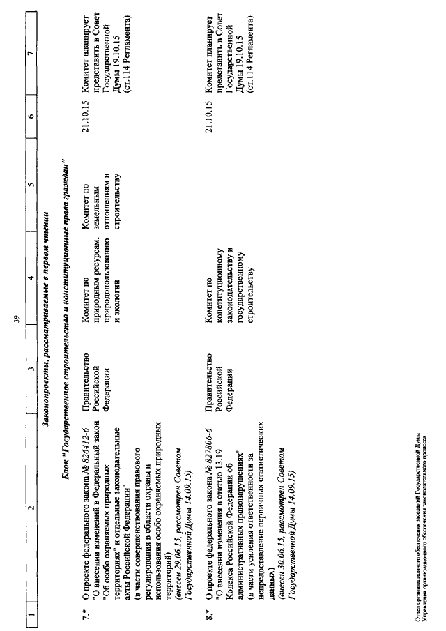 "О КАЛЕНДАРЕ РАССМОТРЕНИЯ ВОПРОСОВ ГОСУДАРСТВЕННОЙ ДУМОЙ С 13 ПО 23 ОКТЯБРЯ 2015 ГОДА"