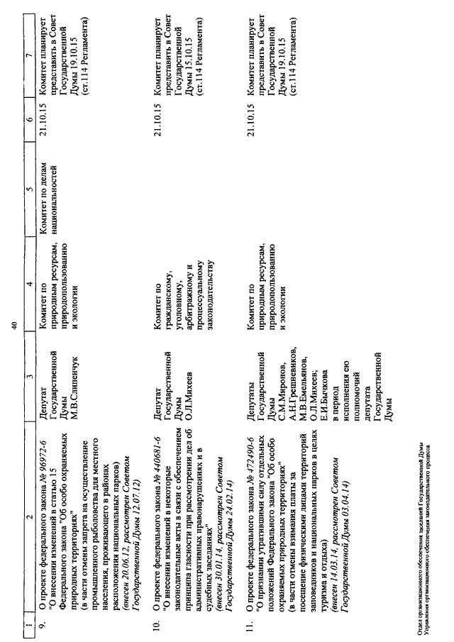 "О КАЛЕНДАРЕ РАССМОТРЕНИЯ ВОПРОСОВ ГОСУДАРСТВЕННОЙ ДУМОЙ С 13 ПО 23 ОКТЯБРЯ 2015 ГОДА"